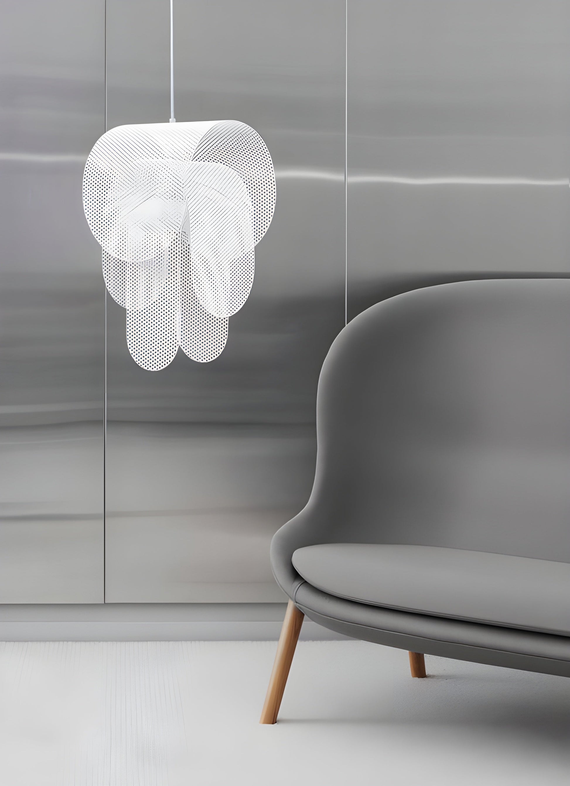 The Normann Copeenhagen Superpose Lamp is a bold fusion of art and function. Designed by Frederik Kurzweg, this sculptural light features three perforated steel sheets, each rotated to create a dynamic play of light and shadow. This unique design shifts depending on the viewer’s angle, making it a stunning visual centerpiece. Whether used as a dining room chandelier or a modern accent in living room furniture.
