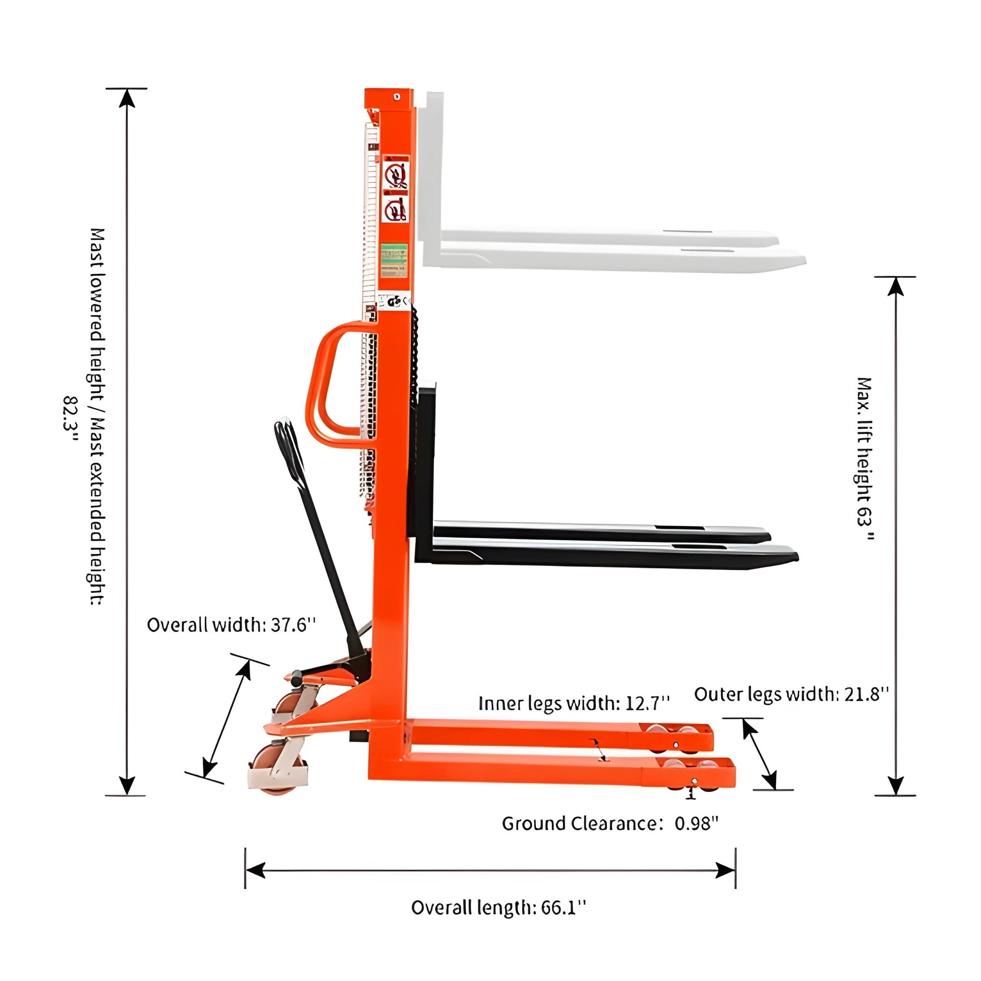 63" Lifting Height β Provides ample elevation for stacking and organizing materials efficiently.