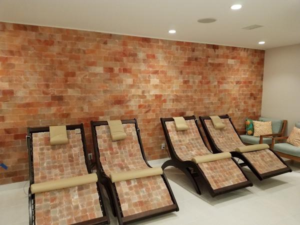 Cradled in healing comfort, experience the nourishing benefits of Himalayan salt while relaxing on the heated, ultra-comfortable Flex-Block™ Salt Lounge for Halotherapy Treatment. Client lays directly on our innovative flex-top surface – Himalayan salt tiles that cushion and give way with the body for a comfortable, cradling feeling. With remote control, the motorized lounge moves easily from upright to a soothing zero-gravity position. Waterproof heater warms the salt tiles that release negative ions to improve respiratory and allergy issues, decrease anxiety, and more. It’s like being in a hammock but on heated salt crystals!