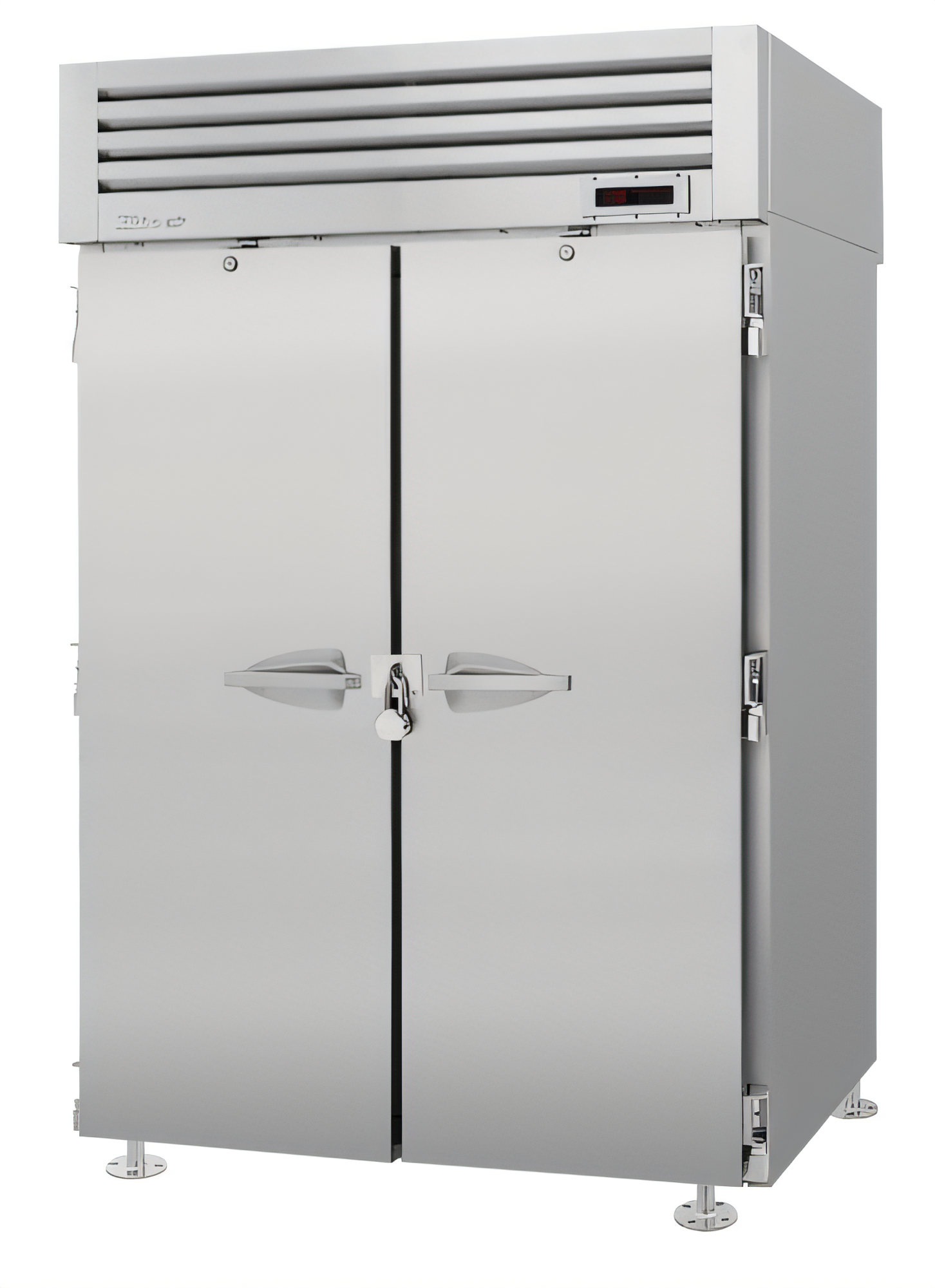 Double-section heated cabinet with clear doors for easy product visibility.