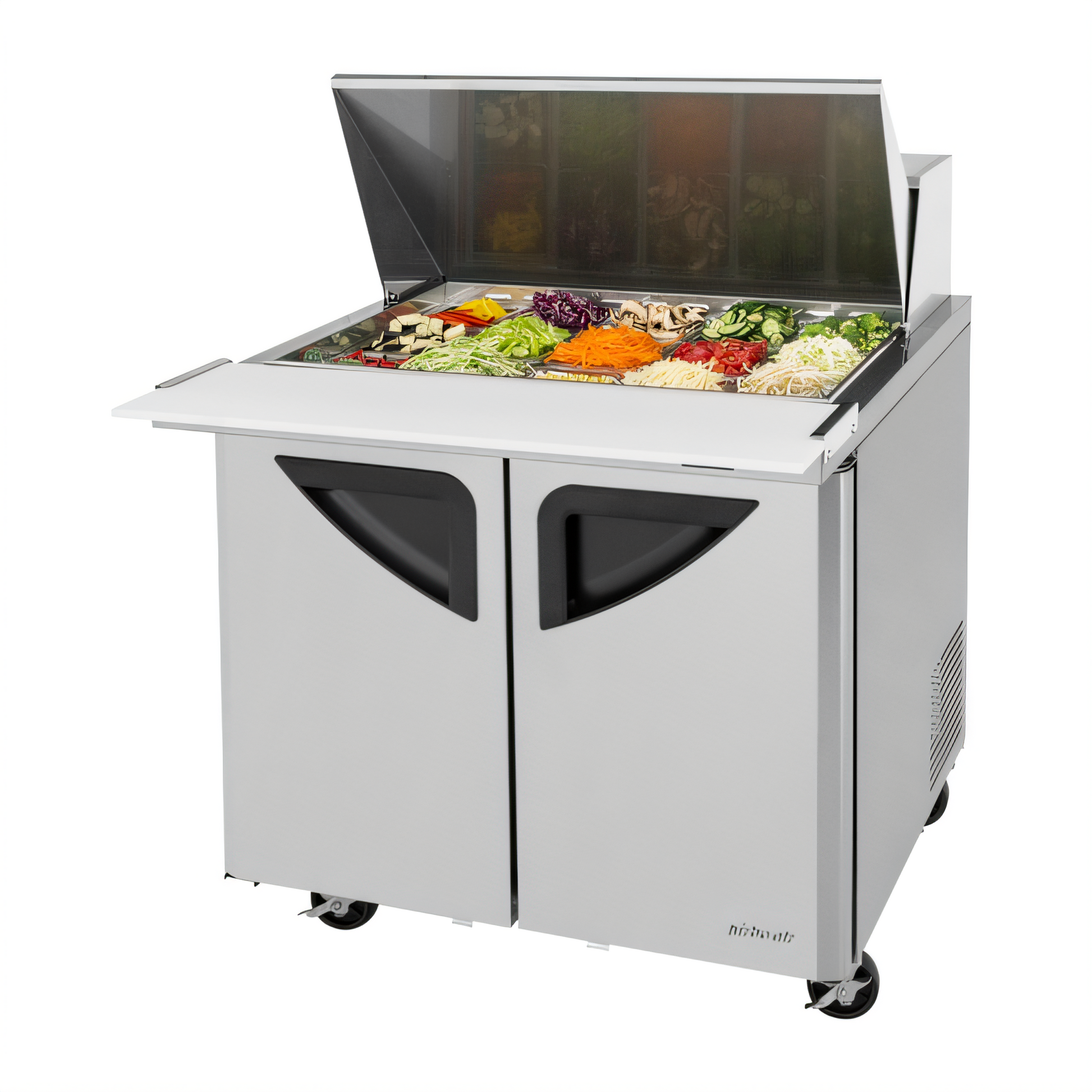 Keep ingredients colder, cleaner, and within easy reach. Turbo Air’s Super Deluxe TST-36SD-15-N6 packs a high-capacity pan rail, full-length cutting board, and energy-saving refrigeration into a compact 36-inch footprint—perfect for sandwich shops, salad stations, and grab-and-go kitchens.