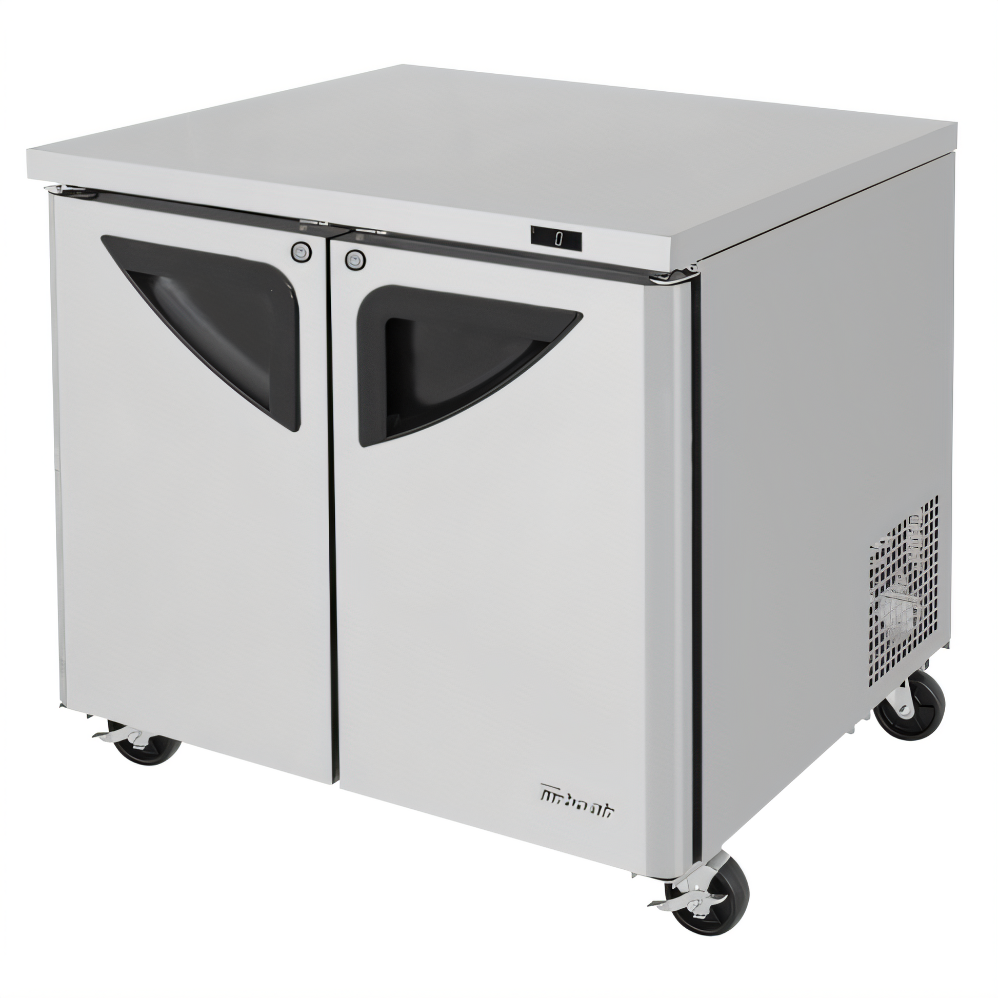 Built for demanding commercial kitchens that refuse to compromise on reliability or appearance, the Turbo Air Super Deluxe undercounter freezer marries a rugged all-stainless cabinet with a patented Self-Cleaning Condenser that sweeps away dust every day—so your system keeps running at peak efficiency without surprise shutdowns. Slide it beneath a 36" prep counter, stock it with up to 9 cu. ft. of frozen product, and enjoy rock-solid temperatures down to -10 °F.