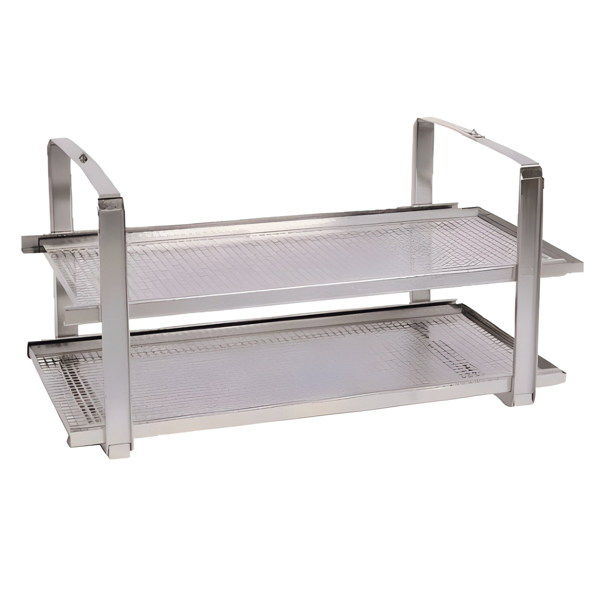 The Tuttnauer 4472 Rack and Two Shelves (#RS-4472) are stainless steel trays that are set on rails for quick unloading. The shelves are extendable and removable.