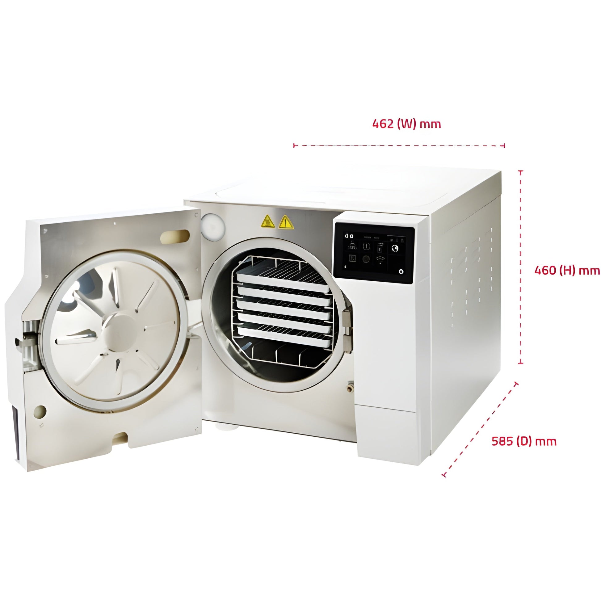 A: Featuring an easy-to-use interface, durable stainless steel chamber, and fast sterilization cycles, it ensures high performance and compliance with sterilization standards.