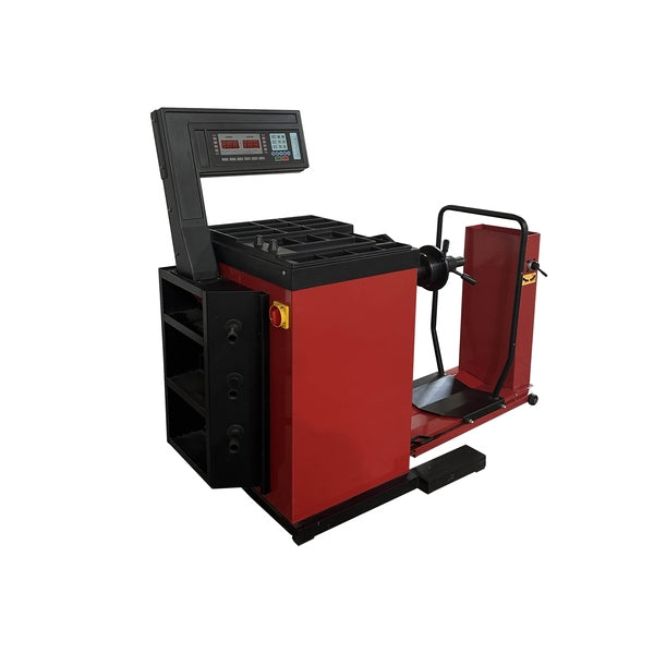 A high-performance machine, this heavy-duty Truck Wheel Balancer with standard pneumatic wheel lift balances wheels up to 298 lbs. quickly and accurately. A great addition to any truck maintenance shop.