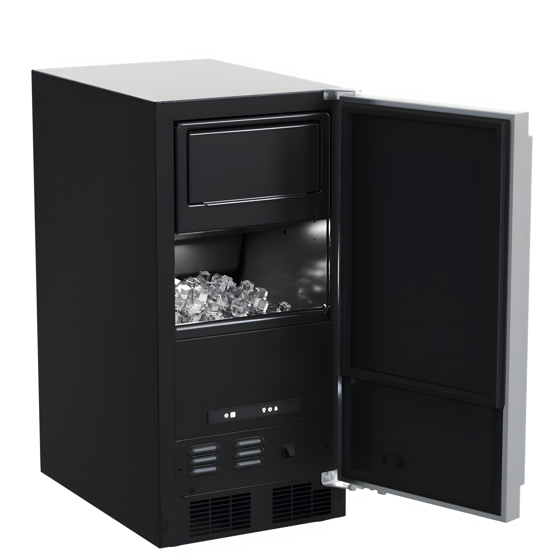 Our 15" ADA Height Compliant Clear Ice Machine offers unsurpassed performance, producing up to 39 lbs. of ice per day with a storage capacity of 23 lbs. This machine is available in stainless steel or integrated panel-ready door finishes, ensuring it complements any kitchen decor. Please note: a drain is required for installation.