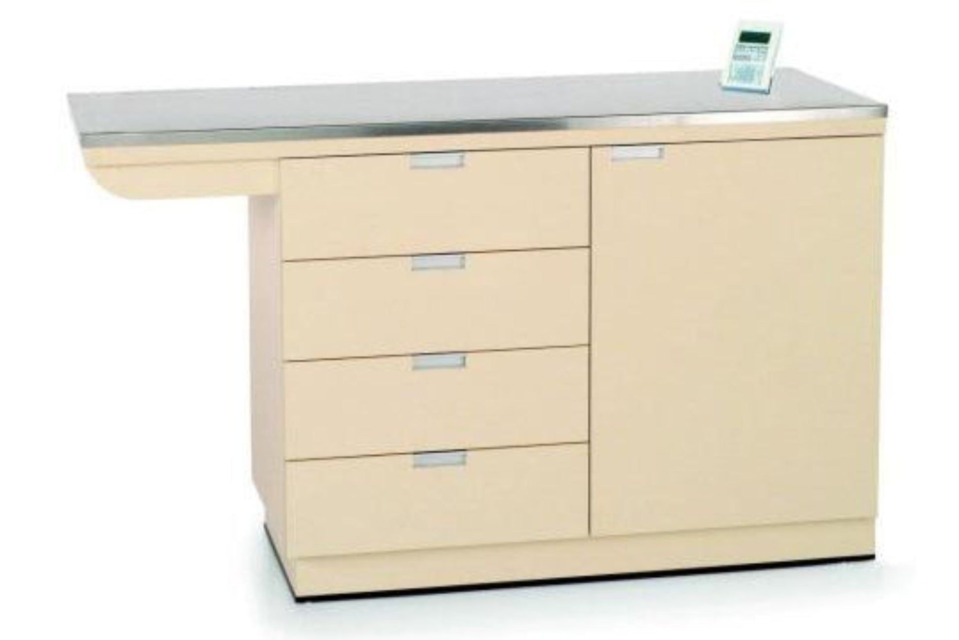 The VetLine exam table functions as both a weigh and an exam table. It has been designed with knee space and equipped with a Vet-Tech 2000 quality scale. This high-quality scale has a 400 lb. capacity digital scale, metric conversion display, motion weight average function and positive overload stop. This cabinet has 4 full extension drawers and a spacious cabinet with a 36" high.