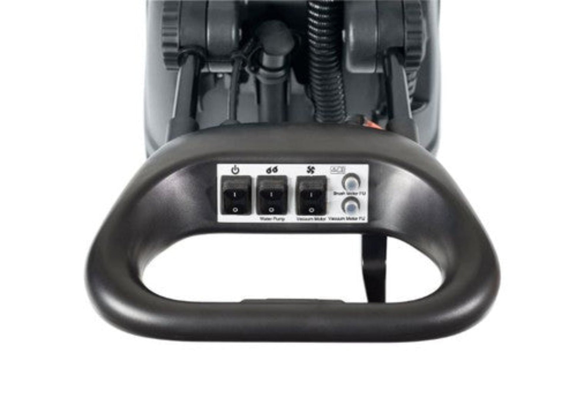 Foot operated parking stand for brush protection Drain hose located at the base of recovery tank for complete drainage Large wheels for easy transport and maneuverability 14.6 AMPs with 1.6HP vacuum motor |