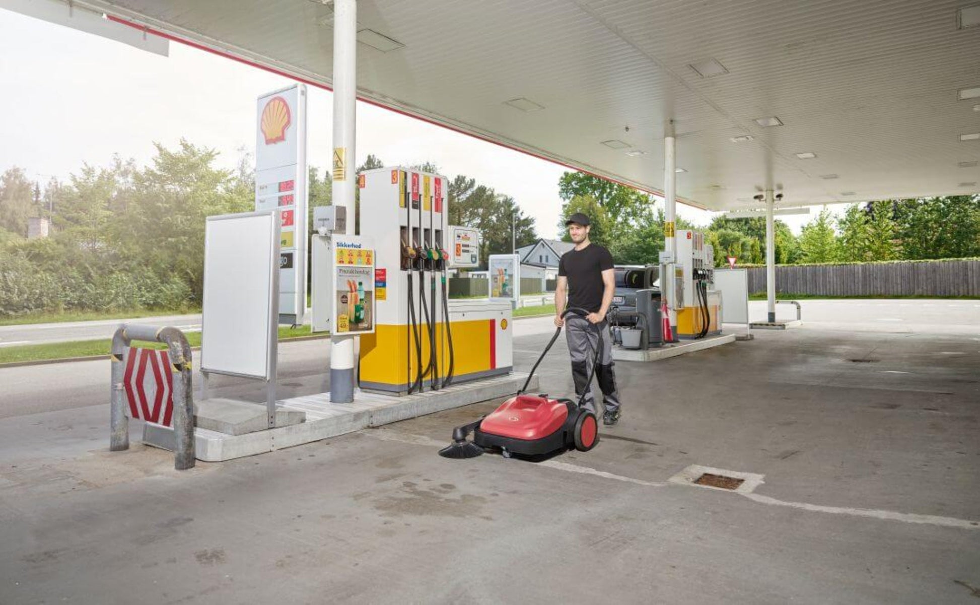 A: It is ideal for indoor and outdoor hard floor surfaces, including warehouses, sidewalks, garages, and commercial spaces.