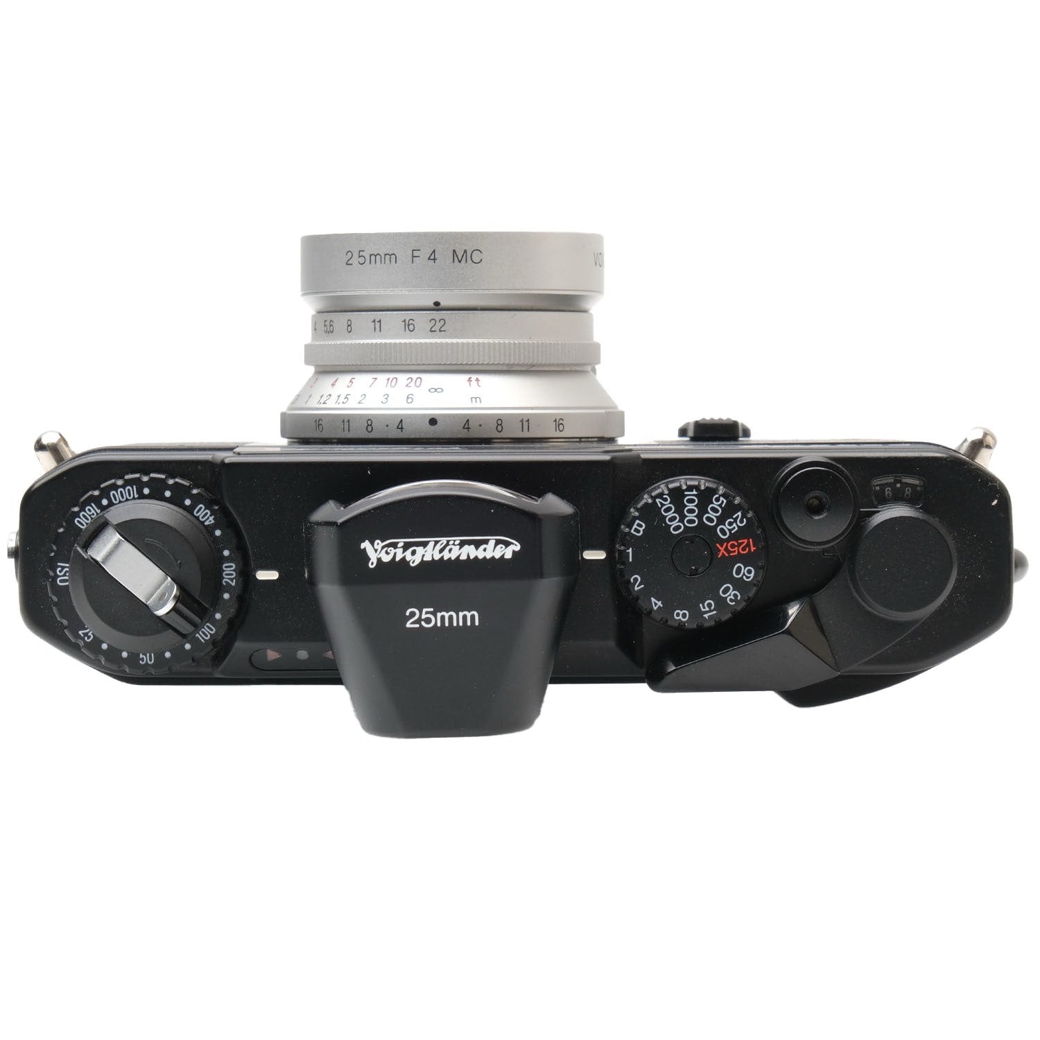 Q: What is the aperture of the Voigtlander 25mm f/4 lens?