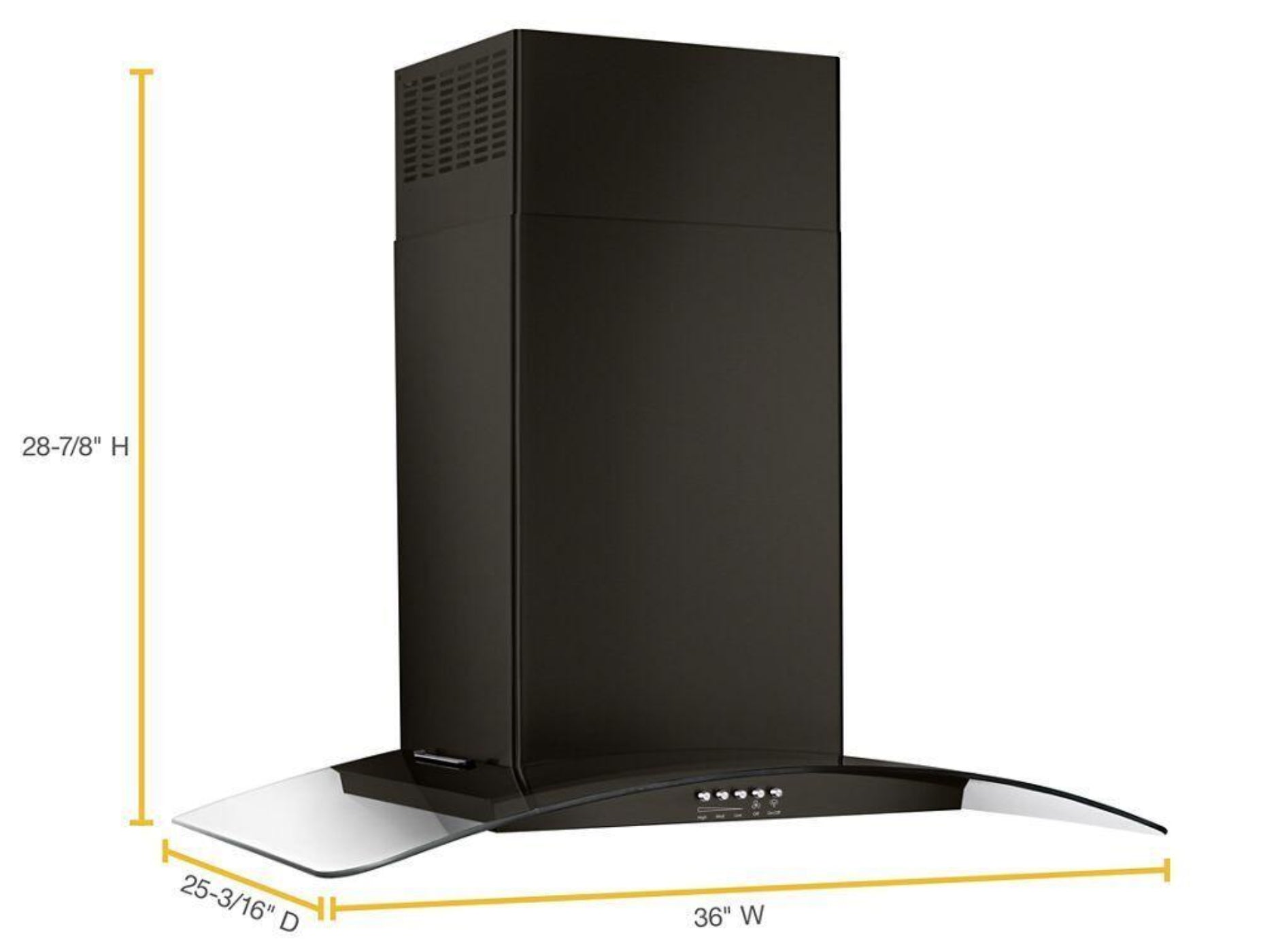 With three fan speeds, this 400 CFM motor class wall mount kitchen hood provides the right ventilation for every meal you prepare and looks good while doing so. Long-lasting LED task lighting shines a bright light to show you what's cooking, and a grease filter helps traps unwanted grease and odors. The range hood's convertible ventilation means you can vent vapors and odors outside or filter them and recirculate the air, depending on your kitchen ventilation system setup. When venting at low speed, sound levels can get as low as 44 dBA.Â