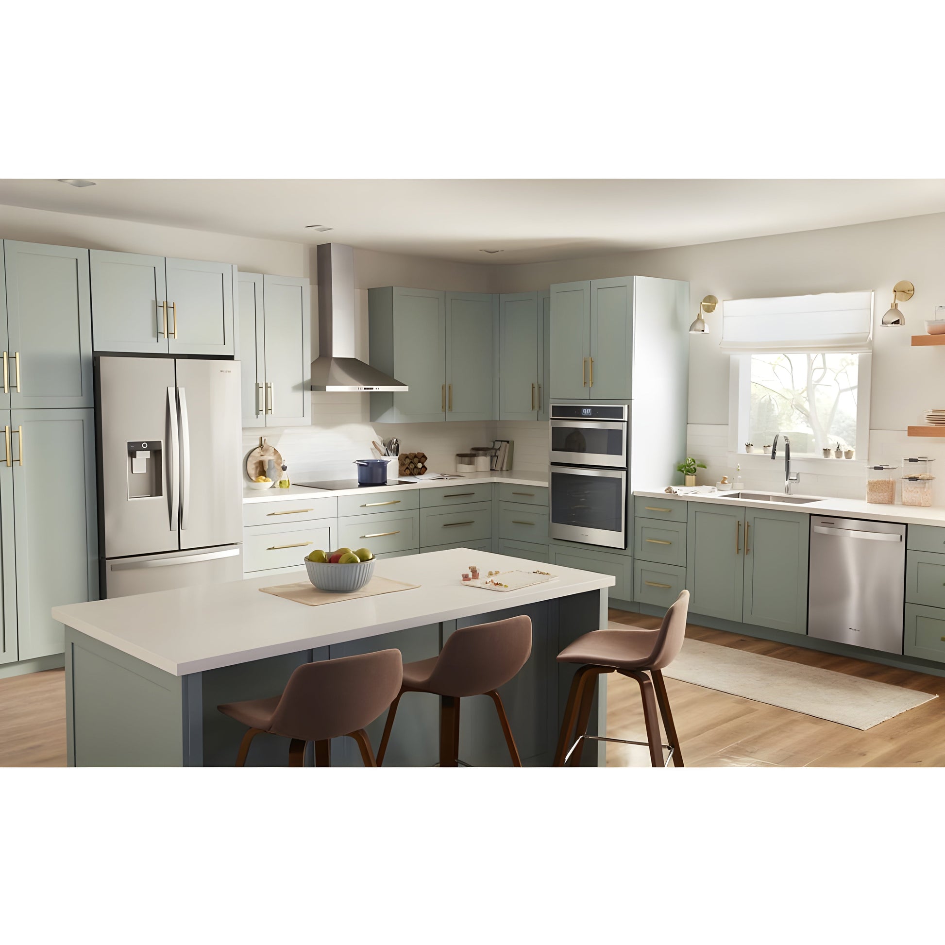 A: The hood features energy-efficient LED lighting for bright, clear illumination over your cooking surface.